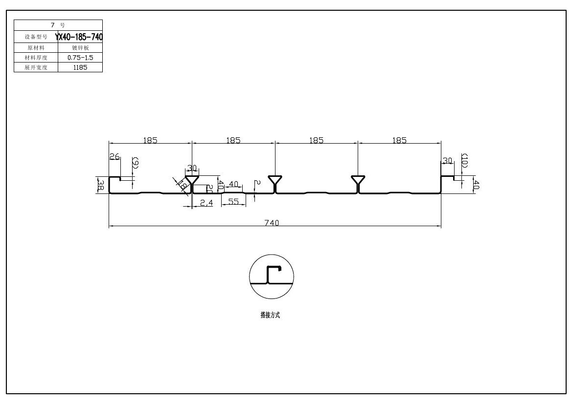 YX40-185-740閉口樓承板提供多種工作平臺,實現立體作業,加快進度,縮短工期,降低綜合成本;強勁的混凝土握裹抗剪(特殊的閉口肋型和腹板上的嵌扣)。
